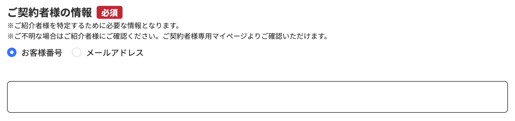 ※お客様番号/メールアドレスについてはご紹介者様にご確認をお願いします。